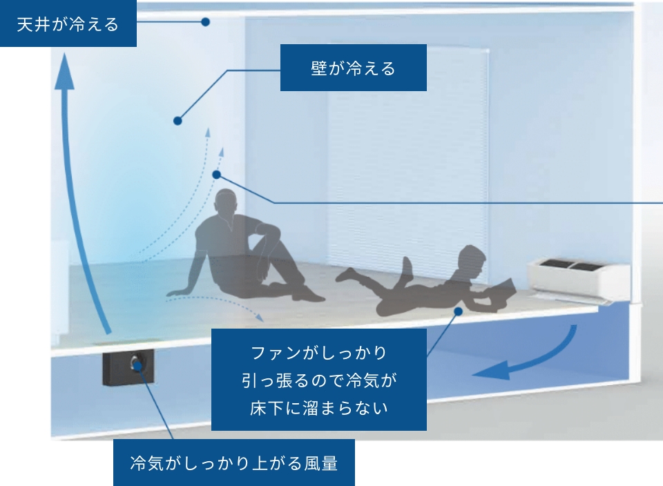- LaLaファンという床下から空気を持ち上げるファンを活用し、冷房にも対応可能!