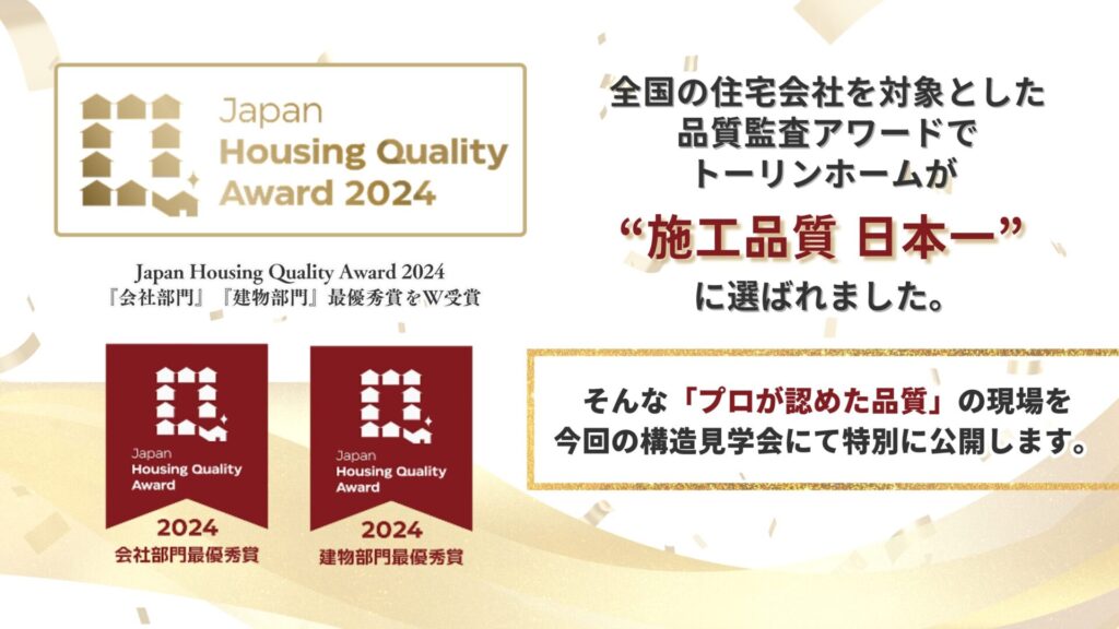 トーリンホームは、全国の住宅会社を対象とした品質監査アワード