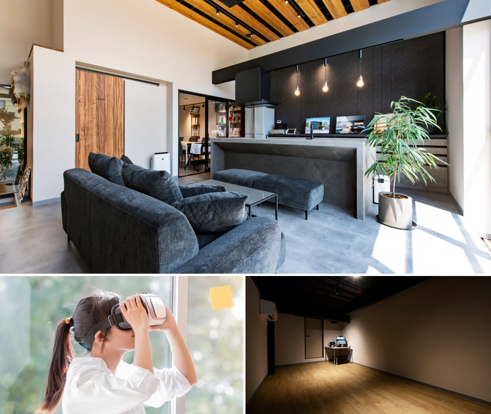 実際にお客様が計画している間取りをVRでリアルに体感いただくことで、まるでその家に住んでいるかのように、空間の広がりや高さ、家具の配置、動線の使いやすさを具体的にイメージできます。